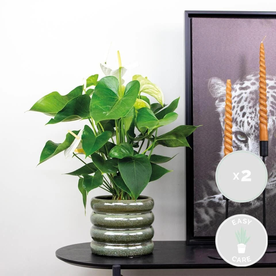 De Anthurium andreanum ‘Aristo’ heeft haar roots liggen in het verre Zuid-Amerika. Deze flamingoplant is zo’n succes door haar sterke karakter en bloei. Niet alleen is zij onderhoudsvriendelijk, ook laat zij haar altijd van haar beste kant zien. De anthurium is namelijk een van de langste non-stop bloeiende potplanten ter wereld. Het hele jaar door kan je genieten van haar hagelwitte hartvormige bloemen. Kortom, de flamingoplant heeft onze harten wel veroverd! Is wit niet jouw kleur? Geen probleem, de anthurium is ook gewoon verkrijgbaar in het rood, roze of zelfs oranje.