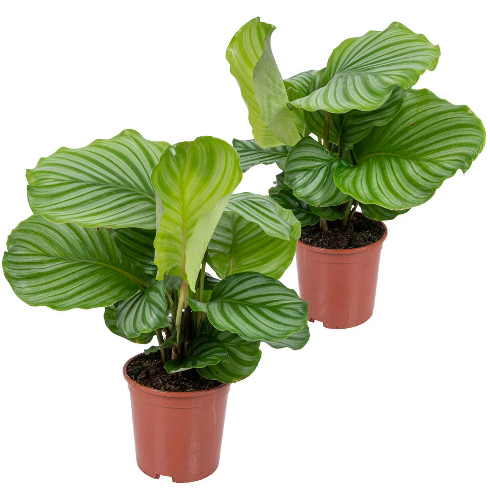 – Deze Calathea Orbifolia (Pauwenplant) wordt per 2 stuks geleverd