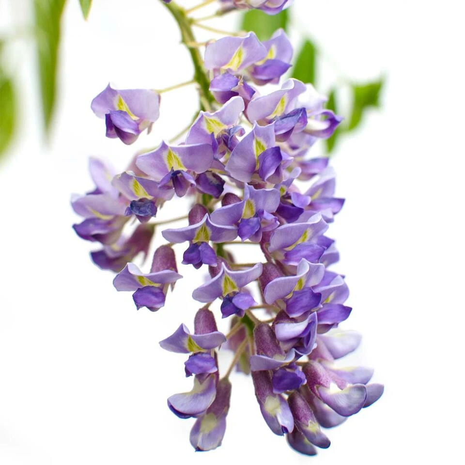 De klimplant Wisteria sinensis Prolific, ofwel de blauwe regen is een onderhoudsvriendelijke plant. Deze plant is de blauw-paarse variant op de welbekende blauwe regen en groeit met mooie, zeer lange én hangende bloemtrossen. Deze bloemtrossen verschijnen massaal in mei-juni, maar in september kan er zelfs nog een nabloei plaatsvinden. De blauw-paarse regen houdt van klimmen en heeft daarbij wel stevige ondersteuning nodig. Met de mooiste bloemen en een heerlijke geur is de Wisteria sinensis Prolific écht een aanwinst voor in jouw tuin.