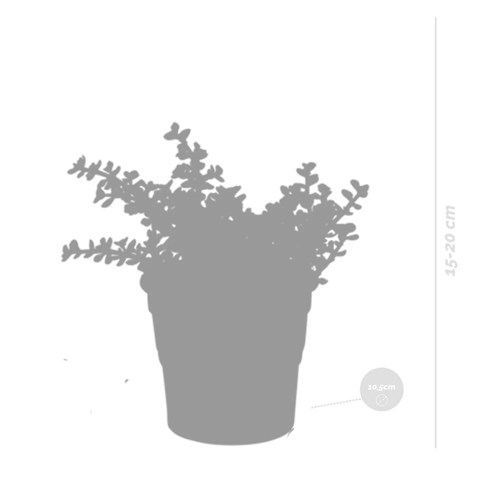 – De leveringshoogte van deze plant is 15 – 20 cm (gemeten van de onderkant van de pot tot aan de bovenkant van de plant).