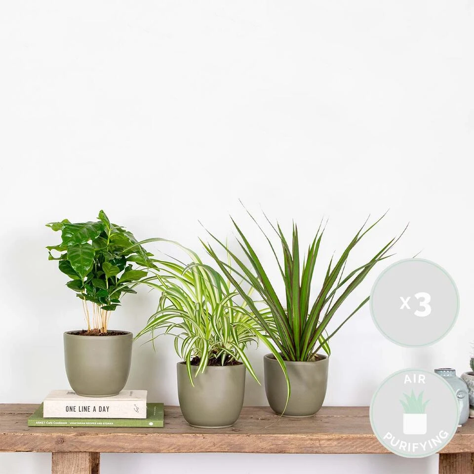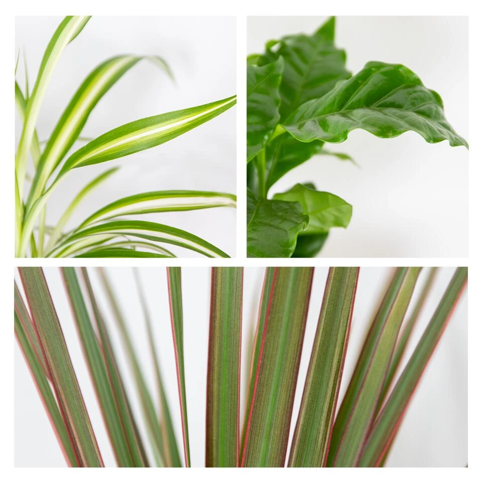 Kan je niet kiezen maar wil je toch wat meer groen in huis halen? Go green met deze groene Kamerplanten mix! Deze mix bestaat uit een mix van een drietal totaal verschillende groene hunks. Alle drie deze planten weten in een mum van tijd jouw interieur op te frissen én geven net dat beetje extra groen. Deze planten vragen niet veel zorg, zijn niet kieskeurig qua standplaats – wel een wat lichtere plek, maar geen direct zonlicht en zijn ook nog eens luchtzuiverend, ideaal toch?