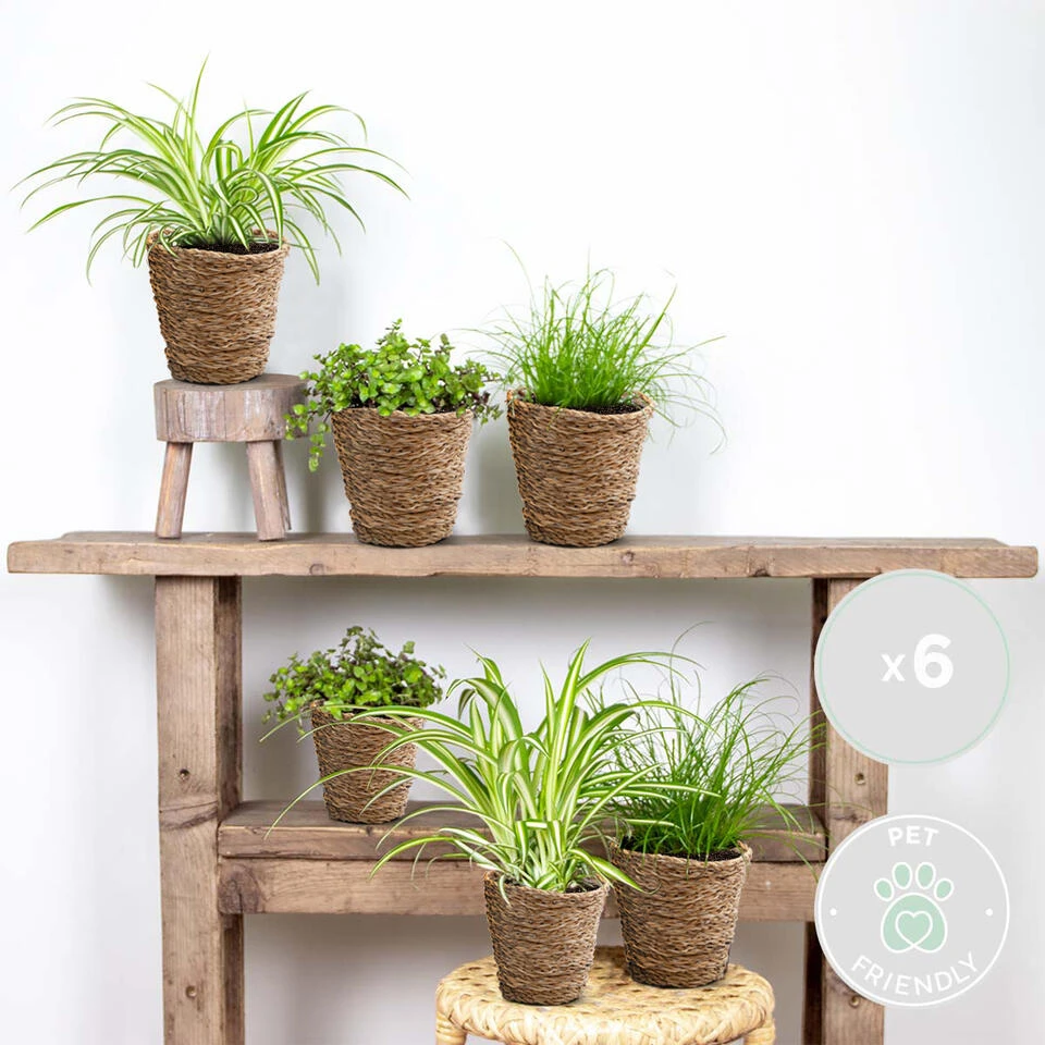 Deze huisdiervriendelijke kamerplanten mix incl. Zeegras Mand Coco, bestaat uit 3 niet-giftige planten welke veilig zijn voor je huisdieren. Mocht je trouwe viervoeter de planten dus toch niet kunnen weerstaan, geen paniek! Ze zijn allemaal veilig om aan te knagen. Daarnaast zorgen de plantjes ook nog eens voor gezelligheid binnenshuis, zijn ze ook nog eens praktisch én komen zij ook nog in de leukste manden! Ideaal toch?