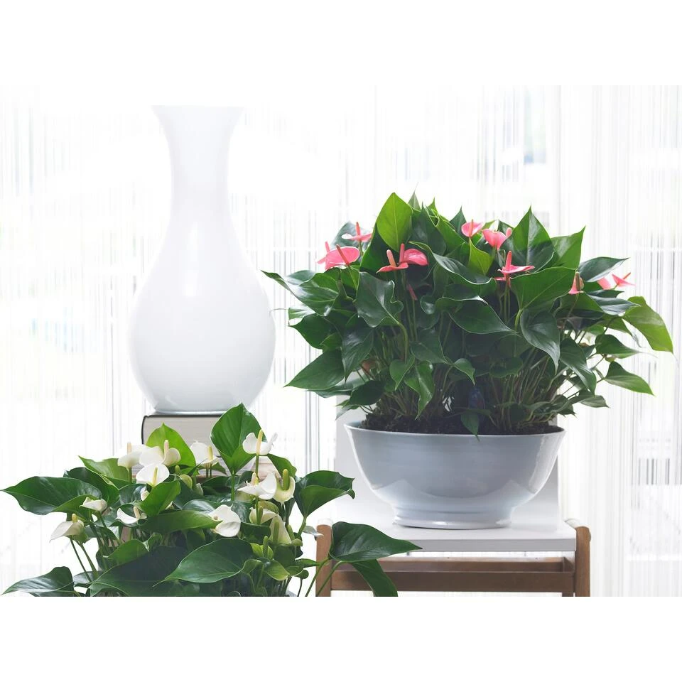 De Anthurium andreanum ‘Aristo’ heeft haar roots liggen in het verre Zuid-Amerika. Deze flamingoplant is zo’n succes door haar sterke karakter en bloei. Niet alleen is zij onderhoudsvriendelijk, ook laat zij haar altijd van haar beste kant zien. De anthurium is namelijk een van de langste non-stop bloeiende potplanten ter wereld. Het hele jaar door kan je genieten van haar felroze hartvormige bloemen. Kortom, de flamingoplant heeft onze harten wel veroverd! Is roze niet jouw kleur? Geen probleem, de anthurium is ook gewoon verkrijgbaar in het rood, wit of zelfs oranje.