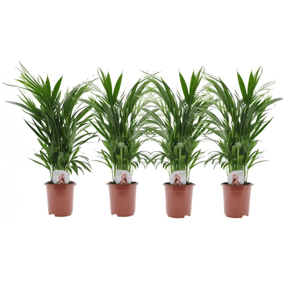 De beroemde en zeer populaire Areca palm, ook bekend als de Goudpalm, komt oorspronkelijk uit de vochtige tropen van Madagaskar. Areca palmen kunnen buiten in de regenwouden tot wel 12 meter hoog worden. Binnen blijft de plant echter veel kleiner en wordt meestal niet groter dan 2 meter. De Areca is nummer één op de lijst van beste luchtzuiverende planten, en zuivert de omgeving waarin hij wordt geplaatst door het verwijderen van gevaarlijke chemicaliën zoals formaldehyde, xyleen en tolueen. Dit maakt de Areca ook zeer populair in kantoren. Afgezien van zijn nuttige eigenschappen, ziet de Areca er ook gewoon mooi uit met zijn smalle, glanzende bladeren.