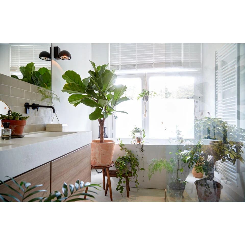 Ben jij al bekend met de vioolbladplant? Deze Ficus Lyrata is een onderhoudsvriendelijke groene blikvanger. Zijn naam heeft hij te danken aan zijn ovaal vormige blad dat wel heel veel weg heeft van een viool. Het blad heeft een golvende rand, donkergroene glanzende bovenkant en een lichtgroene onderkant. Hij groeit op een speelse manier omhoog en heeft soms door deze speelse groei wat ondersteuning nodig – zorg hiervoor met een bamboestok. Zet hem niet in direct zonlicht; zijn bijzondere bladeren zullen dan verbranden.