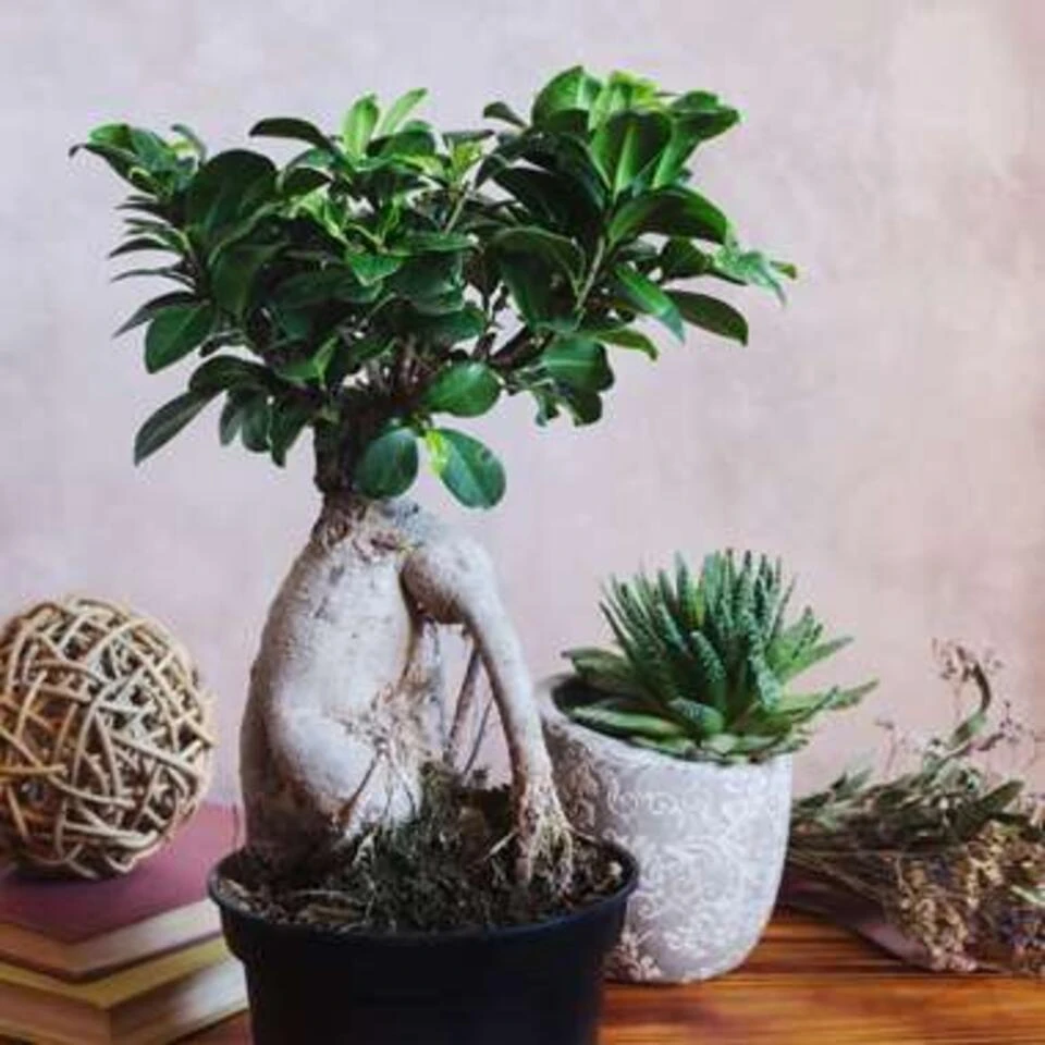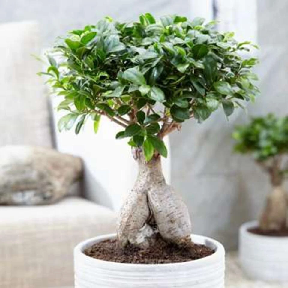 Haal een ware blikvanger in huis met deze sprekende bonsai. De Ficus microcarpa ‘Ginseng’ S-Vorm is een kamerplant die niet alleen uniek is in haar vormen, maar ook nog eens vrij makkelijk te onderhouden is. De naam van deze groene topper betekent eerlijk gezegd ‘boom in pot’. Maar de bonsai is verre van een simpele boom in een pot. Dit kunstwerk is een ware showsteler en staat daarom graag op een zonnig plekje. Geef de bonsai geregeld water, maar niet teveel want ze houden niet van natte voeten.