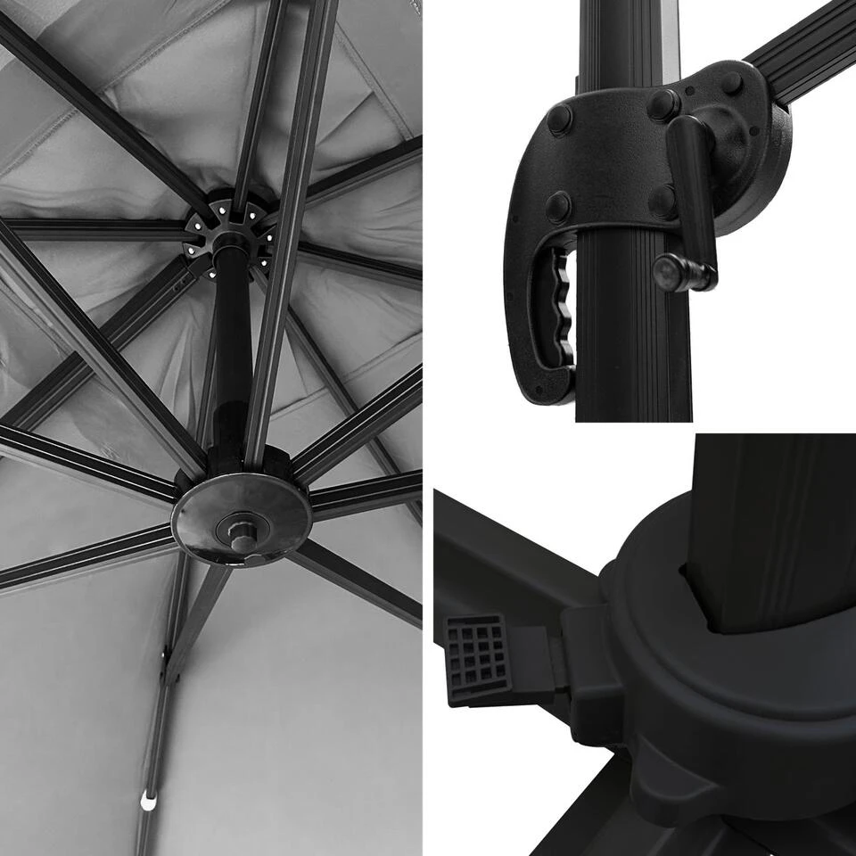 Geniet vol vertrouwen van gezellige momenten met de MOLOKAI parasol. Hij is kantelbaar en draaibaar en beschermt u perfect tegen de zonnestralen. Met een grote spanwijdte en een doek met een hoge UV-dichtheid zal hij uw gasten beschermen, zelfs degenen die aan het einde van de tafel zijn geïnstalleerd. Bovendien zal zijn stijlvolle en elegante look die zonnige dagen nog aangenamer maken. Vergeet niet om platen toe te voegen om de off-centre parasol op zijn plaats te houden.
