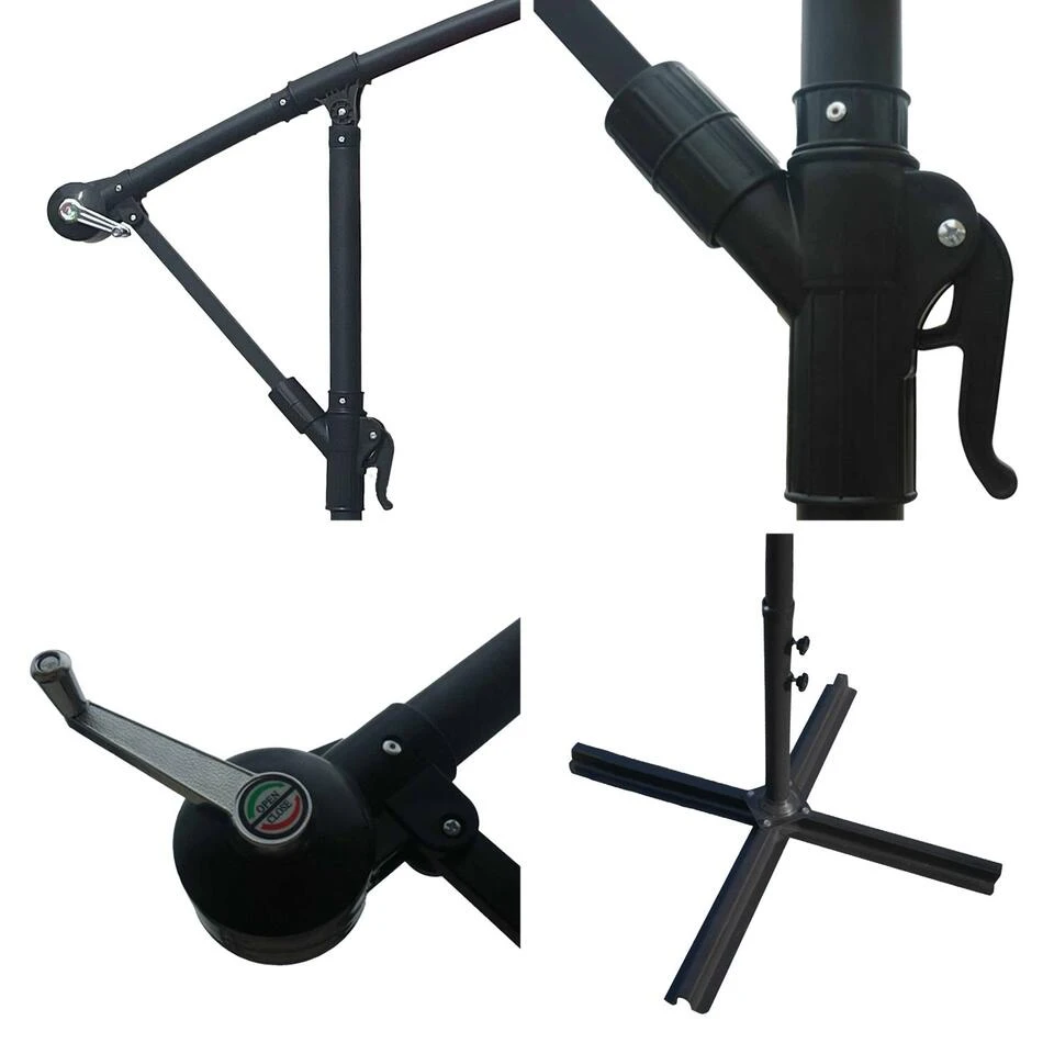 Plaats je MOLOKAI gedeporteerde parasol waar je maar wilt, afhankelijk van de stand van de zon, voor optimale bescherming de hele dag lang. Zijn spanwijdte bedekt de hele tafel zodat iedereen kan genieten van een gezellig moment zonder last te hebben van het licht. Qua design geeft de scharnierende paal hem een heel eigentijdse look. De mooie combinatie van kleuren tussen de mast en de parasolhoes geeft je buiteninrichting een elegant accent. Deze offset parasol past perfect bij elke tuinsalon. Maak je off-centre parasol compleet met een set ballastplaten om hem op zijn plaats te houden tijdens gebruik. Bekijk ze in onze catalogus.