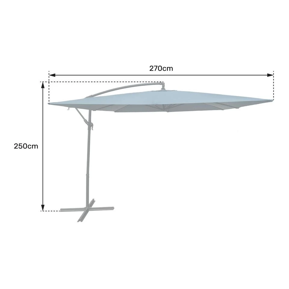 – Paraplu: L 2,7 × B 2,7 × H 2,5m