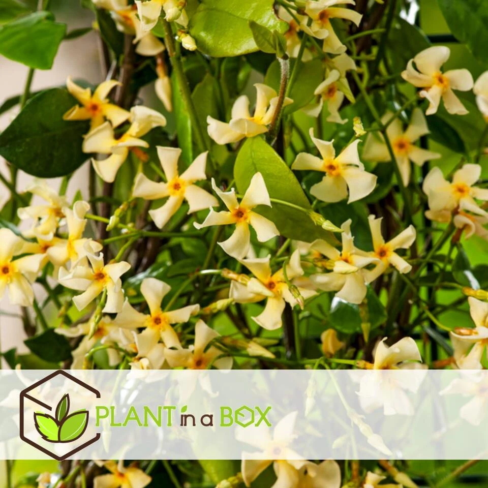 CreΓ«er een kleurenexplosie in je tuin met deze prachtige gele jasmijn. Deze elegante groenblijvende klimmer draagt mooie stervormige bloemen. Het glanzende, donkergroene blad van jasmijn vormt de perfecte achtergrond voor zijn dramatische bloemen die de lucht parfumeren met een onweerstaanbare, zoete geur. Deze plant blijft βs winters mooi groen en bloeit met geurige, gele, stervormige bloemen. Toscaanse jasmijn bloeit vanaf eind april de hele zomer door. Je kunt de Toscaanse jasmijn soms tientallen meters verderop al ruiken. Door de heerlijke geur wordt jasmijn ook vaak in parfum gebruikt. Deze grote jasmijnplanten worden geleverd op een stok.