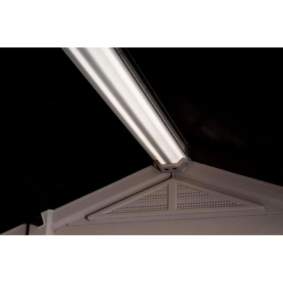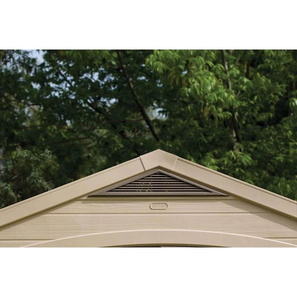 Dit ruime tuinhuisje van het bekende merk Keter heeft openslaande deuren die je kunt afsluiten (slot wordt niet meegeleverd). Het tuinhuisje heeft een ventilatierooster en is gemaakt van hoogwaardige verstevigde kunststof in de kleuren beige en bruin. Aan de binnenkant is het huisje voorzien van metalen versteviging. Het huisje heeft twee ruime legplanken. Heb je opbergruimte nodig voor tuinmeubelen, tuingereedschap, tuinkussens, de barbecue en de grasmaaier? Dan is dit ruime tuinhuisje de ideale oplossing.