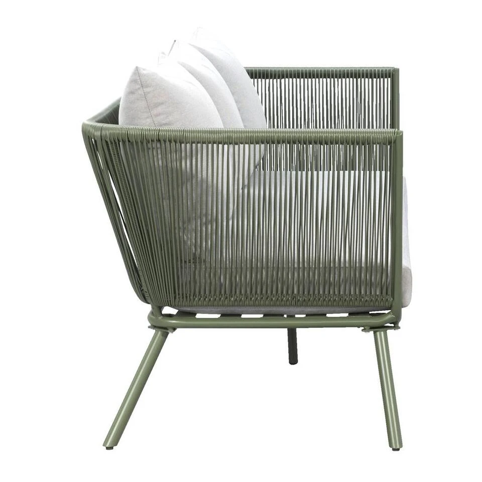 Dit is een moderne, trendy tuinbank met een eigentijdse look. Loungebank Almeria is gemaakt van olijfgroen metaal. Dit geeft de loungebank een moderne en stoere uitstraling. Door het gebruik van weerbestendige en onderhoudsarme materialen is deze loungebank perfect voor buiten gebruik. En natuurlijk de perfecte keus als je wilt genieten van mooie, stijlvolle meubelen, maar geen tijd kwijt wilt zijn aan het onderhoud. Deze 3-zitsbank wordt geleverd inclusief heerlijk comfortabele grijze loungekussens. Dus leun achterover en laat het genieten beginnen.Â