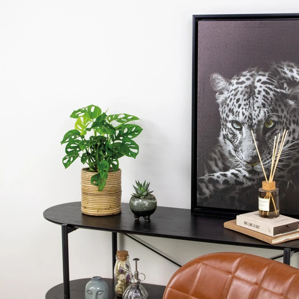 Dit monster(a) wordt ook wel Monstera adansonii ‘Monkey Leaf’ genoemd. Deze gatenplant is een regelrechte tropische hunk door zijn grote groene bladeren die ook nog eens luchtzuiverend zijn. Op deze manier produceert hij extra zuurstof en filtert hij schadelijke stoffen uit de lucht. Deze groene rakker is snel oververhit, vergeet hem dus niet geregeld een beetje af te koelen. Heel erg eigenwijs is de Monkey Leaf niet, hij stelt niet veel eisen en is erg onderhoudsvriendelijk. Hij is helemaal uit Mexico gekomen, dit is toch wel het plantje van onze dromen!