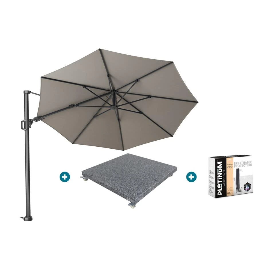 Platinum Challenger T2 3.5m. rond parasol Manhattan Grey met voet en hoes