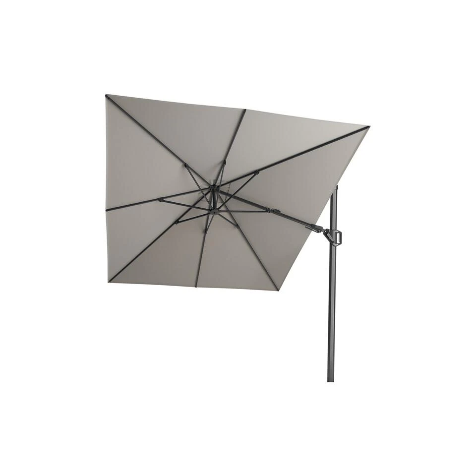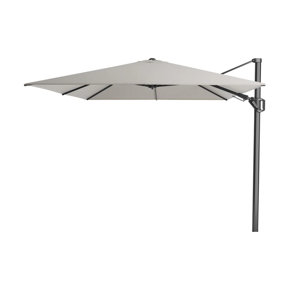 Op zoek naar een zweefparasol met bijpassende voet en hoes? Dan is de Platinum Challenger T2 3.5×2.6m. een aanrader. Deze grote zweefparasol wordt geleverd met een bijpassende parasolvoet van 90 kg. en een beschermhoes. De challenger heeft een antraciet frame en een Manhattan Grey parasoldoek. Het frame is gemaakt van aluminium. Dit materiaal is erg stevig en heeft als voordeel dat het niet kan verroesten. Het parasoldoek is gemaakt van Spuncrylic en is water en vuil afstotend.