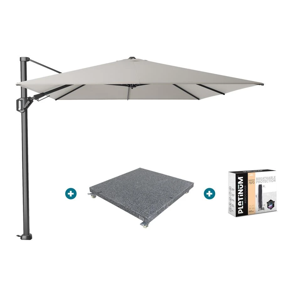 Platinum Challenger T2 3.5×2.6 m. parasol Manhattan Grey met voet en hoes