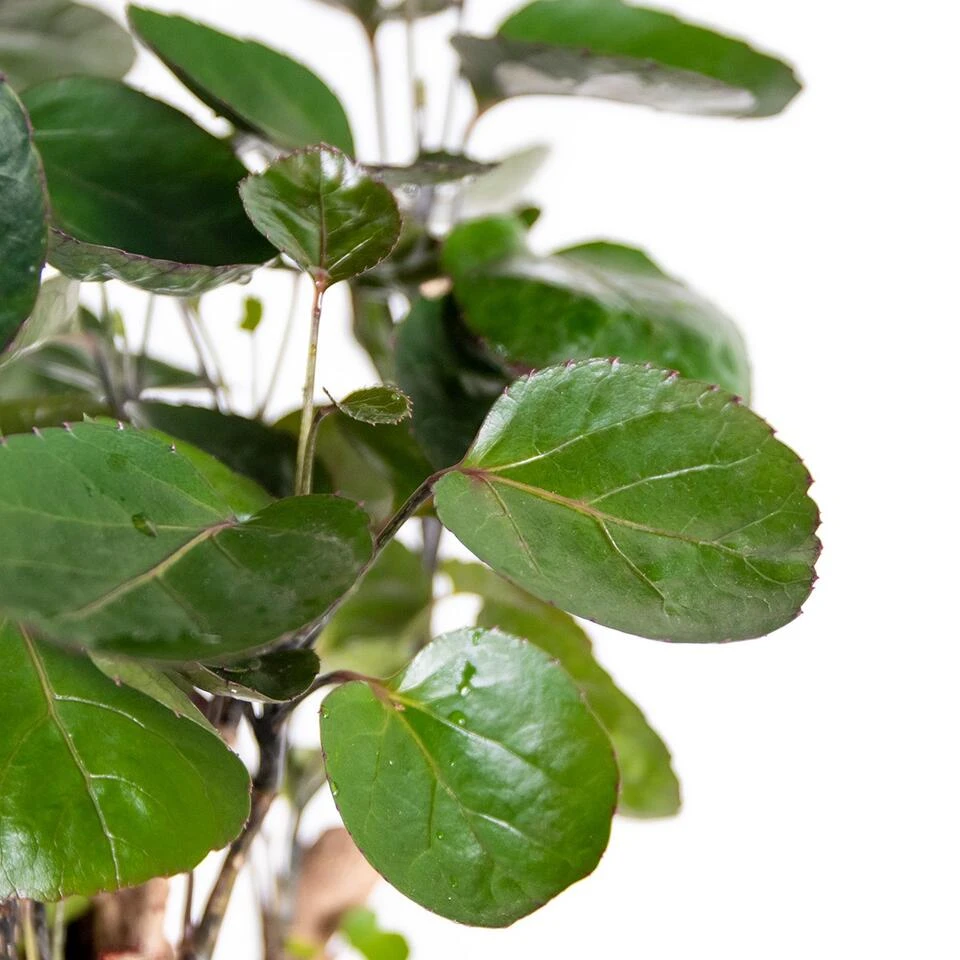 Hier zie je de Polyscias scutellaria ‘Fabian’. Een klein boompje voor bij jou in huis! Oorspronkelijk groeit de Polyscias op eilanden in de Pacifische oceaan. In het wild worden deze bomen zo’n 2 – 6 meter hoog en zorgen ze met hun grote bladeren voor veel schaduw. Polyscias betekent dan ook ‘veel schaduw’ in het Grieks. ‘Fabian’ heeft echter een handiger formaat, zodat je binnenshuis ook van deze prachtboom kunt genieten. Deze compacte kamerplant heeft een dikke houten stam. Dit kleine, vertakkende boompje krijgt bladeren over de volledige lengte van zijn takken. Dit zorgt voor een fijne mix aan natuurlijke kleuren.