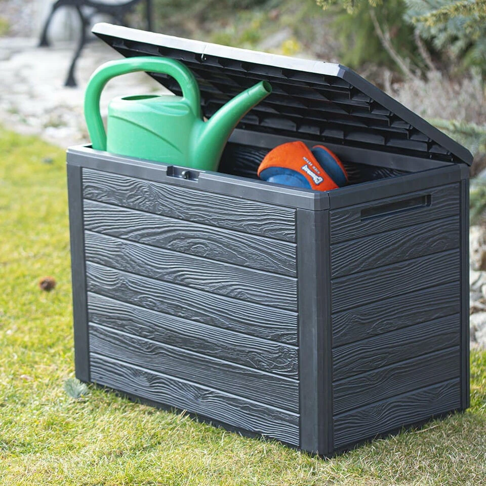 Prosperplast Kussenbox – Antraciet – Hout Patroon – 190 L – 78 Cm