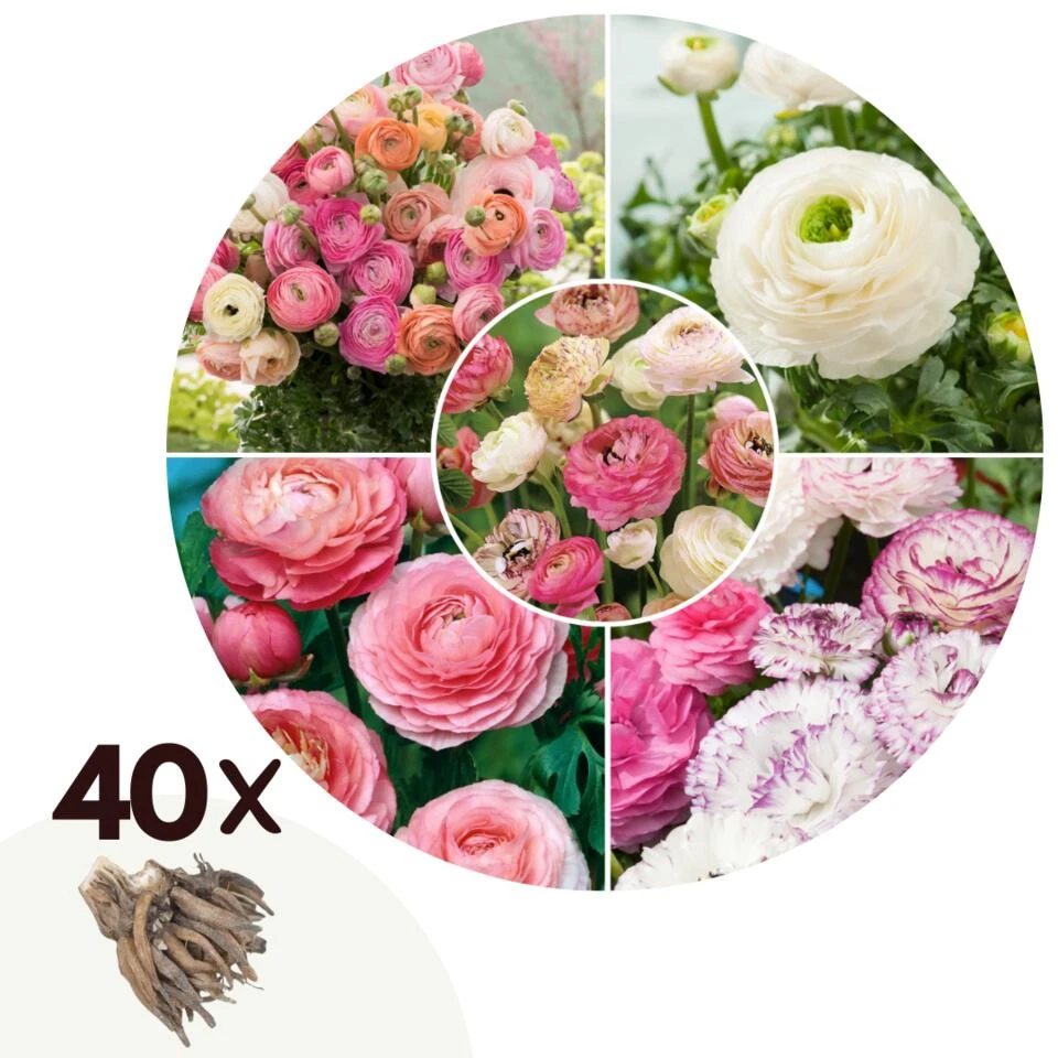 De Ranunculus, ook wel bekend als ranonkel, is een dankbare zomerbloeier waar je maandenlang van kunt genieten. In deze mix ontvang je 40 ranunculus bloembollen in mooie pastelkleuren. De planten bloeien de hele zomer van juli tot de eerste nachtvorst. Ranunculus wordt ongeveer 30-40 cm. hoog, wat ze erg geschikt maakt voor de border. Ook zijn de prachtige bloemen zeer geschikt als snijbloemen en doen ze het lang goed in een vaas. De ranonkel is daarom erg populair bij bloemisten en wordt vaak gebruikt op bruiloften. De bollen kunnen van maart t/m mei en van september t/m december geplant worden. Bewaar de knollen na de bloei op een vorstvrije plaats en je hebt er jarenlang plezier van.