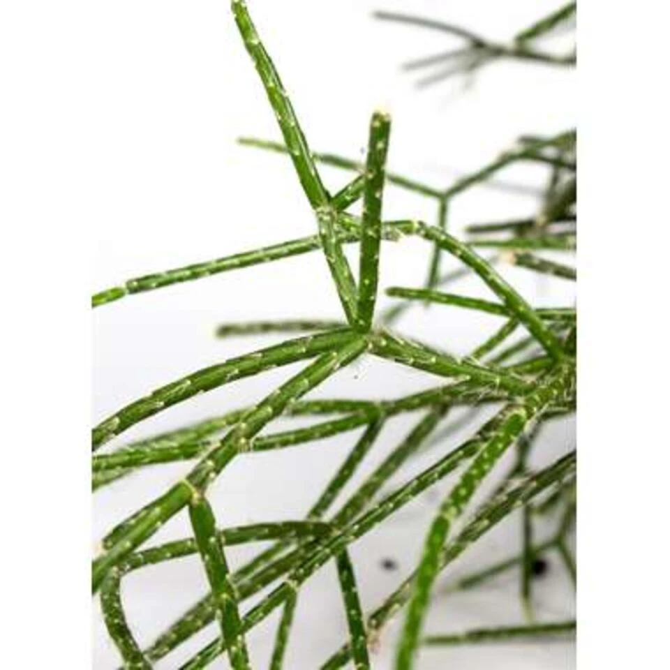De Rhipsalis pilocarpa heeft dunne koraalachtige stengels met lichtgekleurde donshaartjes die de plant een zilverkleurig effect geven. Een rhipsalis is een makkelijke kamerplant die je gerust een keertje mag vergeten water te geven. Het is een succulent van de cactusfamilie die vaak als hangplant voorkomt. De stengels van deze plant hebben een unieke vorm die doet denken aan koraal. In Nederland noemen we deze kamerplant daarom ook wel koraalcactus. Oorspronkelijk komt deze plant voor in Afrika, Zuid- en Midden-Amerika en enkele eilanden in de Indische Oceaan. In tegenstelling tot andere leden uit de Cactaceae familie, komt deze cactus dus uit de tropen. Hij heeft dan ook andere verzorgingsbehoeften in vergelijking tot de meeste cactussen.