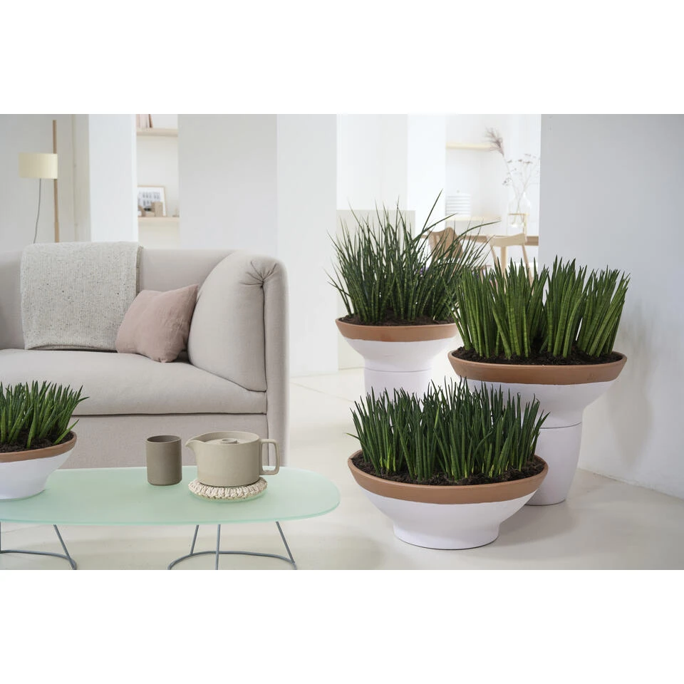 Mijn Sansevieria Fernwood Punk staat voor het raam! Dit is een onderhoudsvriendelijke plantje én onder de meesten wel bekend als vrouwentong. Je herkent de Sansevieria Punk aan zijn stekelige bos bladeren die donkergroene en zilvergrijze kleurtonen heeft. Deze succulent vraagt weinig aandacht en mag je wel eens vergeten water te geven – graag zelfs. Een vaste stamplek heeft hij niet, zo kan hij vrijwel overal neergezet worden. Naast dat die gemakkelijk is in de omgang is hij ook nog eens luchtzuiverend. De perfecte groene vriend voor diegene met lichtgroene vingers.
