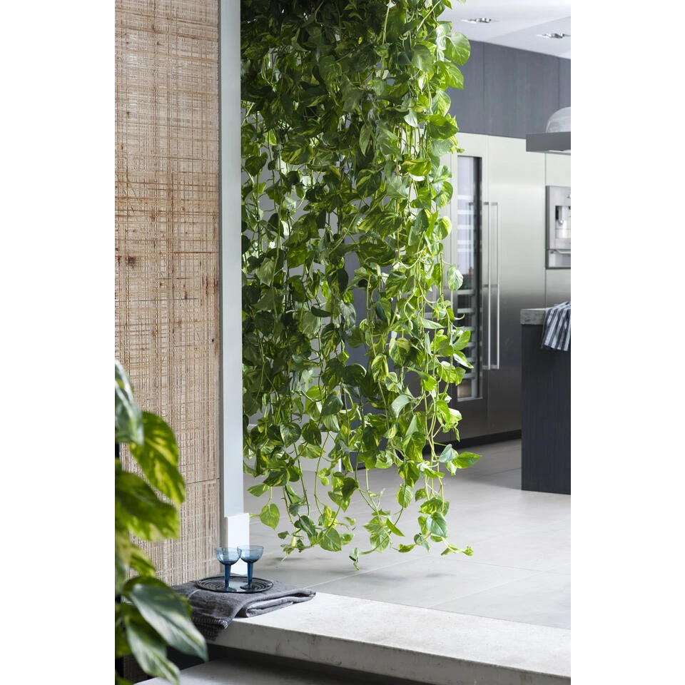 Don’t leave me hanging, want deze unieke Scindapsus Aureum kan je ook fantastisch stijlen in een pot. Deze Drakenklimop heeft haar naam te danken aan haar hartvormige geel groene bladeren. Niet alleen hebben de bladeren aan deze klimop een unieke look en feel, ook zuiveren zij de lucht. Deze groene klimmer kan wel tegen een stootje en is erg gemakkelijk in haar onderhoud. Dit maakt de plant niet alleen uniek om naar te kijken, maar ook nog eens bijzonder efficiënt.
