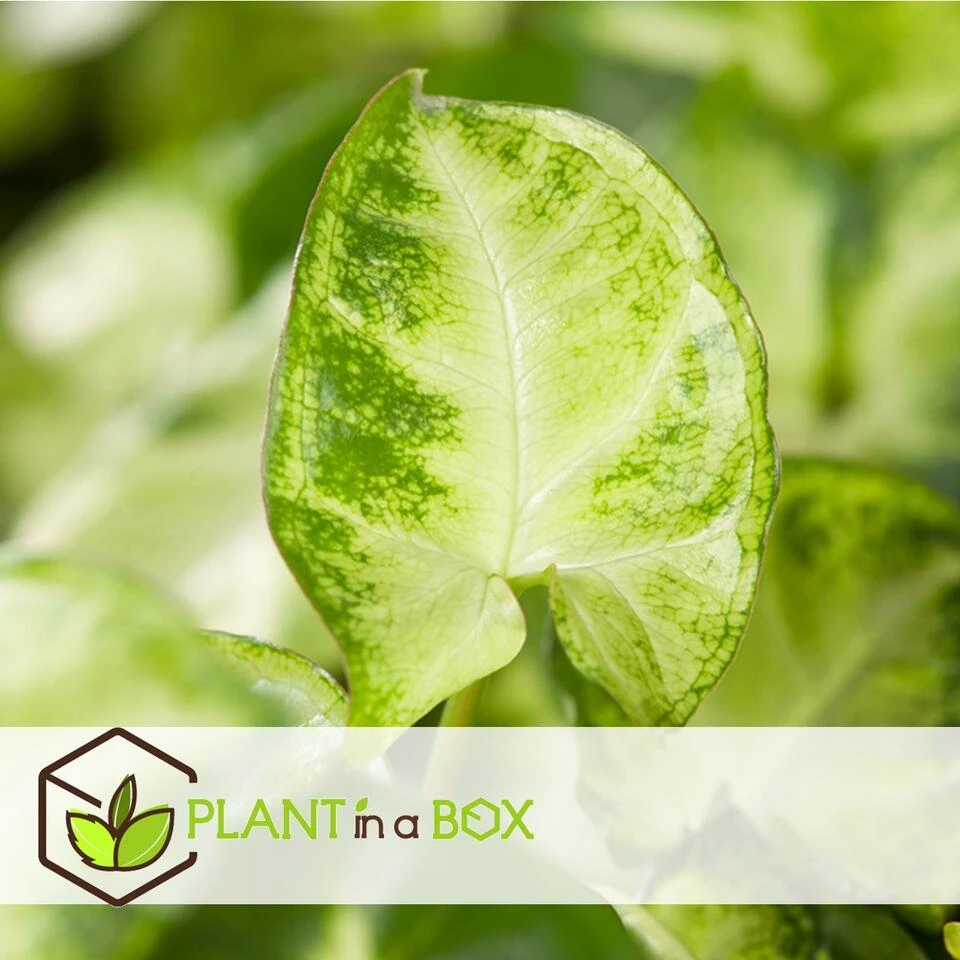 Syngonium ‘Pixie’ wordt ook wel Vlinderplant of Pijlpuntplant genoemd vanwege de vorm van de bladeren. Het is een snelgroeiende Syngonium met witte hartjes op groene bladeren. De Syngonium ‘Pixie’ is een hybride die is ontstaan vanwege de heldere bladkleuren en de gemakkelijke groei. Als jonge plant beginnen de bladeren hartvormig en worden geleidelijk pijlvormig naarmate de plant volwassener wordt. De donkergroene bladeren van de Syngonium zijn zilverwit of crèmekleurig gekleurd, waardoor het een decoratieve en populaire kamerplant is.
