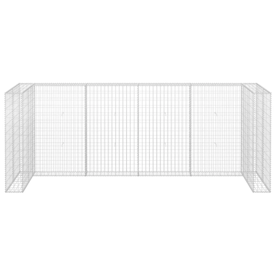 De stevige gabion is ontworpen om met stenen of grind gevuld te worden. De korf is vervaardigd van roestvrij en weerbestendig staal en is heel stabiel en duurzaam. Het gazen raster is vervaardigd van dwarse en langsliggende draden die bij elke kruising gelast zijn voor extra stabiliteit. Onze gabion muur is geschikt om 4 containers te omheinen. De schanskorfmuur is eenvoudig te monteren.