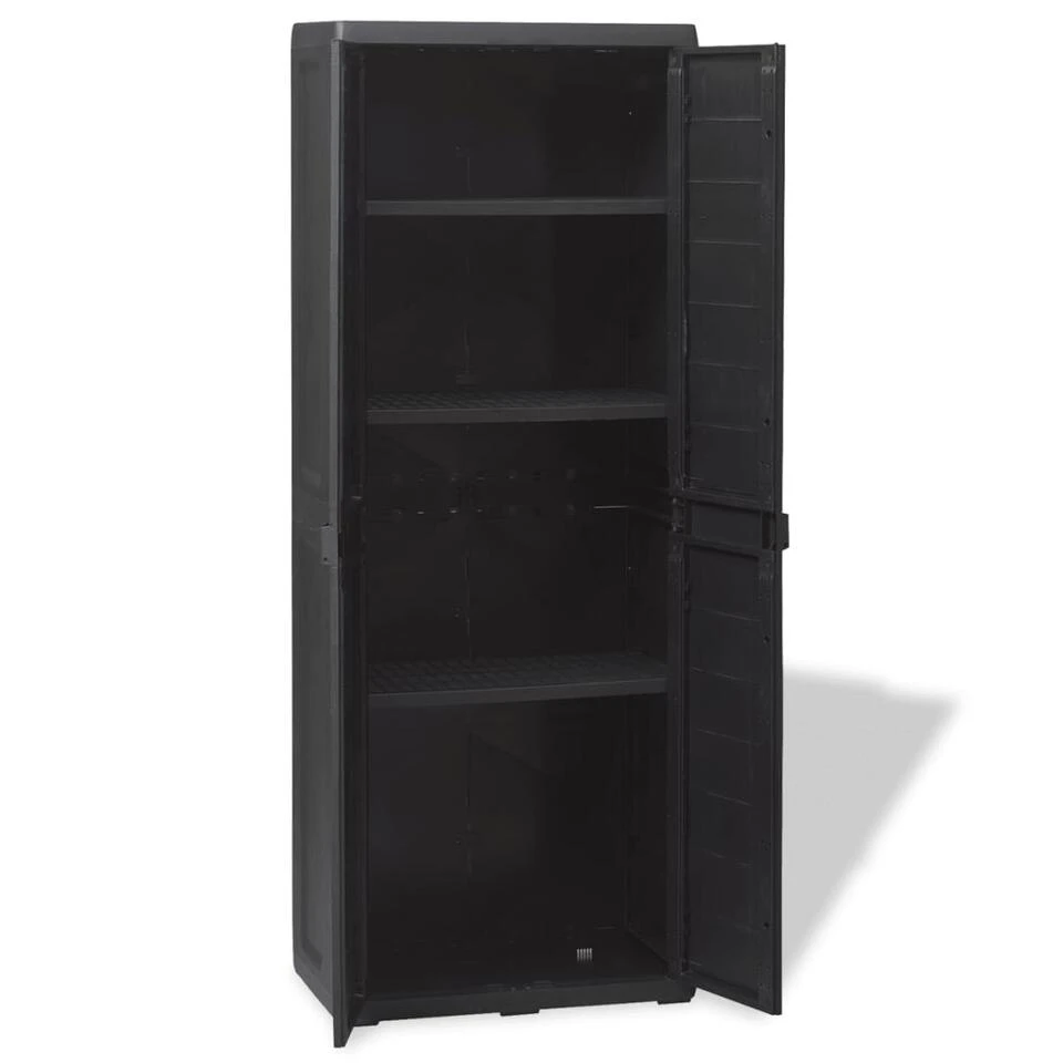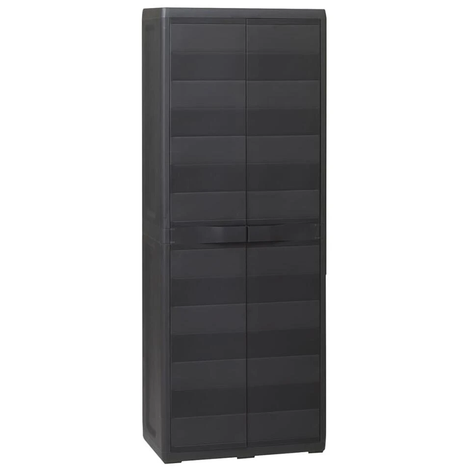 Onze hoogwaardige opslagkast is ideaal voor het opbergen en organiseren van je huishoudelijke spullen, gereedschap en andere spullen in de tuin of op het terras, enz. Deze kast past bij iedere inrichting dankzij het tijdloze ontwerp.