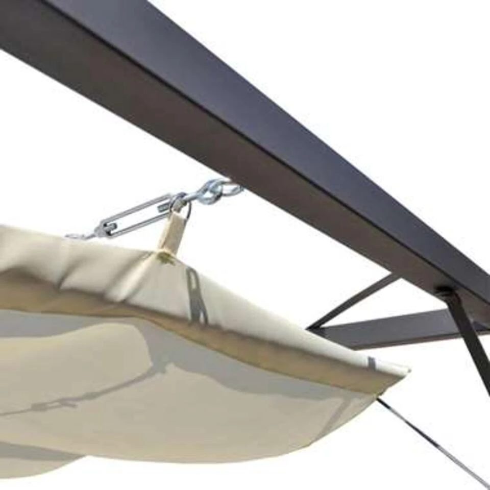 Dit tuinpaviljoen biedt je familie en je vrienden comfort en bescherming tegen de elementen. Het is geschikt voor verschillende weersomstandigheden; het uittrekbare dak beschermt je tegen schadelijke uv-stralen en tegen de regen. Het tuinpaviljoen is gemaakt van een gepoedercoat metalen frame en een waterbestendig 100% polyester doek.